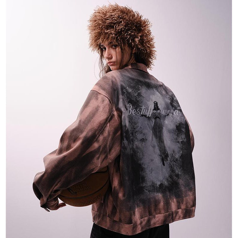 3D Digital Loose Straight Leg Denim Jeans